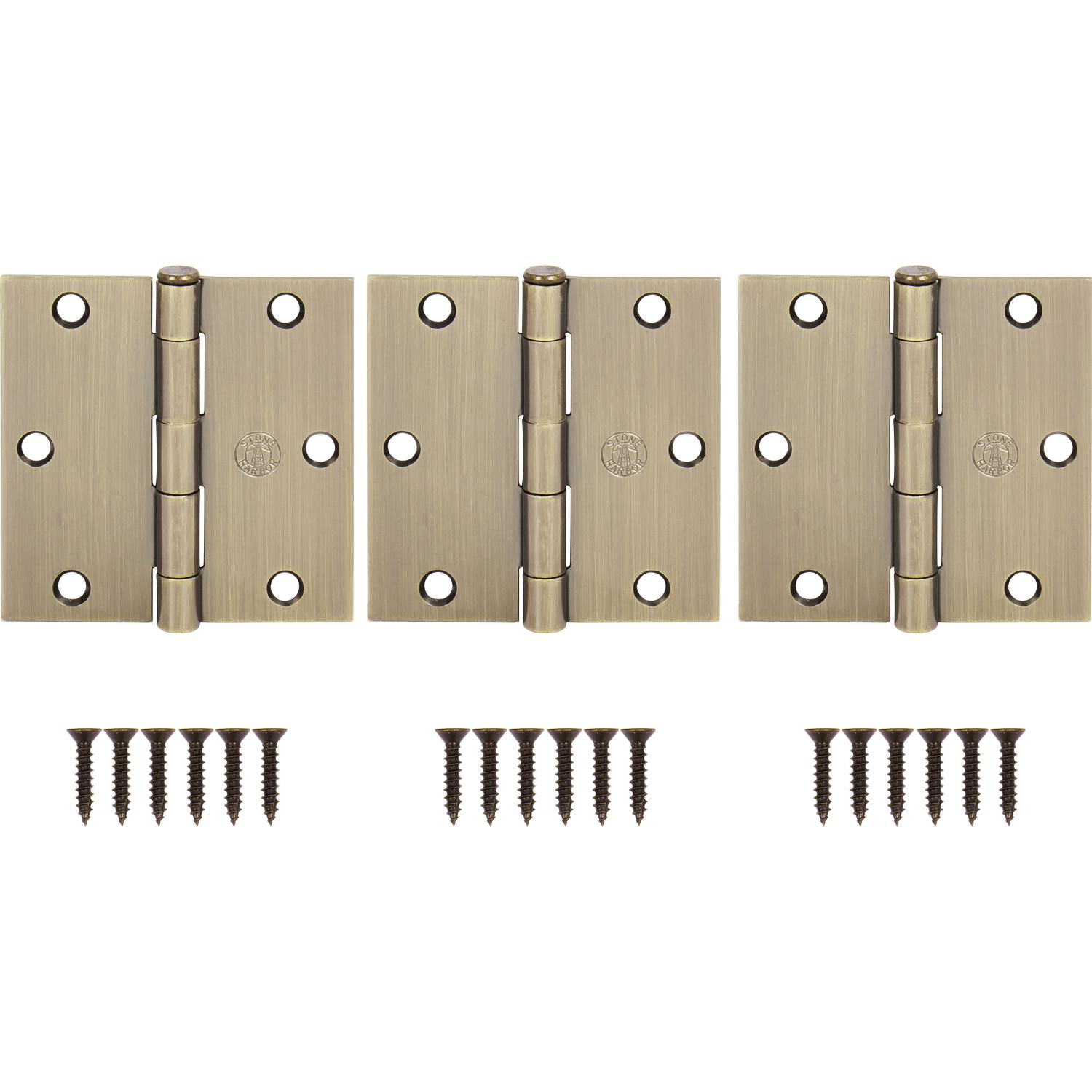 - EASY INSTALLATION: To accommodate customers of various levels of experience, square corner door hinges come equipped with all necessary mounting hardware, including #9 x 3/4" wood screws.